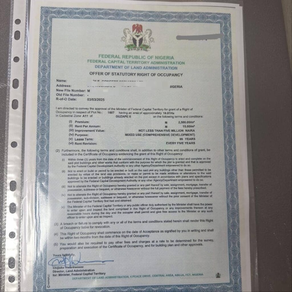 Here’s your chance to own a 10-hectare (approx. 24.7 acres) parcel of land strategically located in Guzape 2, one of the most desirable and fast-growing areas within the Federal Capital Territory.